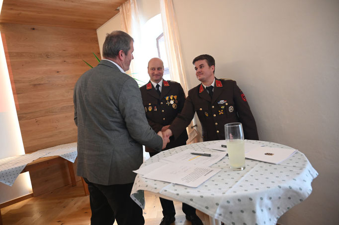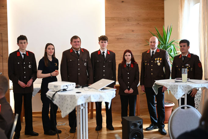 Gratulieren möchten wir herzlich allen Mitgliedern, welche bei der Versammlung befördert bzw. geehrt wurden. Aaron Gassner, Anna Stressler, Fabian Buchberger, Hannah Berndl, Karl Hager, Roland Templ und Sophie Schoberberger erhielten den Feuerwehrmann-Dienstgrad. Christian Buchberger wurde zum Löschmeister befördert und Justin Furtner in den aktiven Dienst überstellt. Josef Mock wurde für 50 Jahre verdienstvolle Tätigkeit im Feuerwehrwesen geehrt.