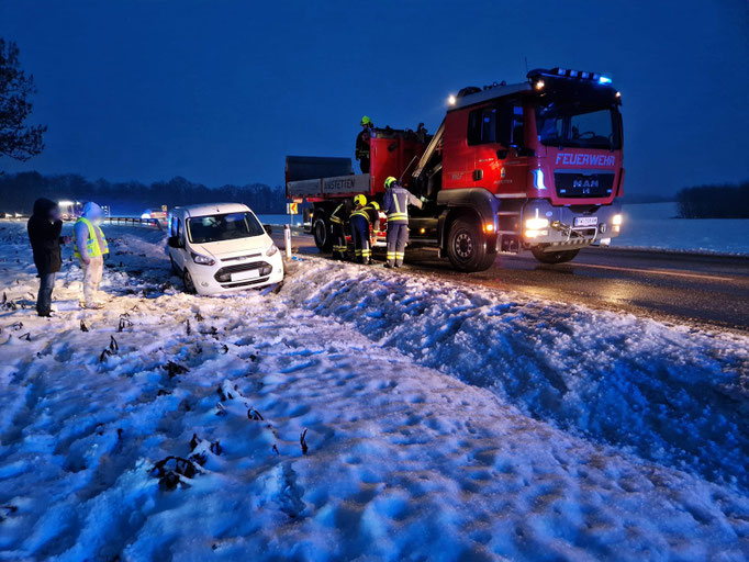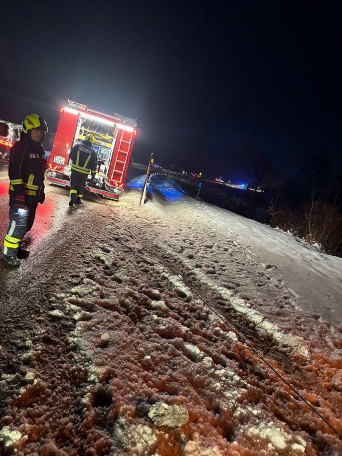 Noch während des Einsatzes kam es etwa 100 Meter entfernt zu einem weiteren Unfall – ein zweites Fahrzeug kam auf rutschiger Straße von der Fahrbahn ab. Das Fahrzeug wurde durch unsere Feuerwehr mittels Seilwinde geborgen. Die Lenkerin konnte die Fahrt infolge fortsetzen.