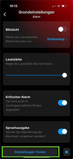 Die gewählten Einstellungen können am Ende mit „Einstellungen Testen“ geprüft werden.