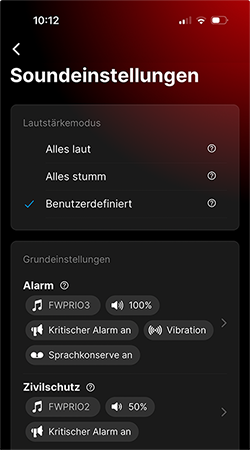 Unabhängig davon empfehlen wir, die Lautstärke der Signaltöne in der LEA-App anzupassen. Änderungen können in der App über Einstellungen > Soundeinstellungen vorgenommen werden. Für den Typ „Alarm“ empfehlen wir ein möglichst auffällige Konfiguration. Mitgliederinformation werden in der Regel im Typ „LEA-Nachricht“ verschickt. Dieser Signalton sollte sich von der Alarmierung deutlich unterscheiden.